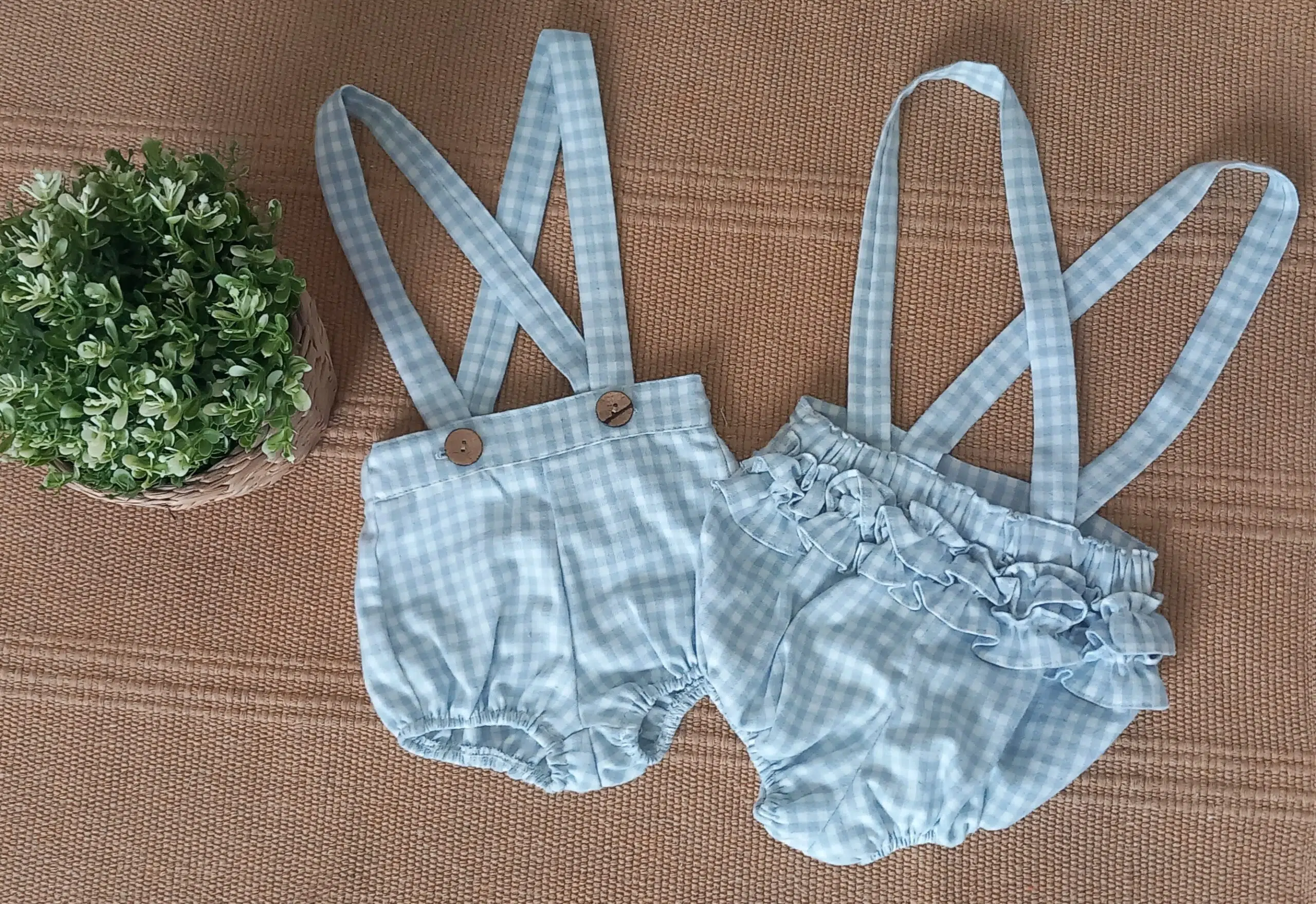 Peto Cuadro Celeste y Blanco Volantes